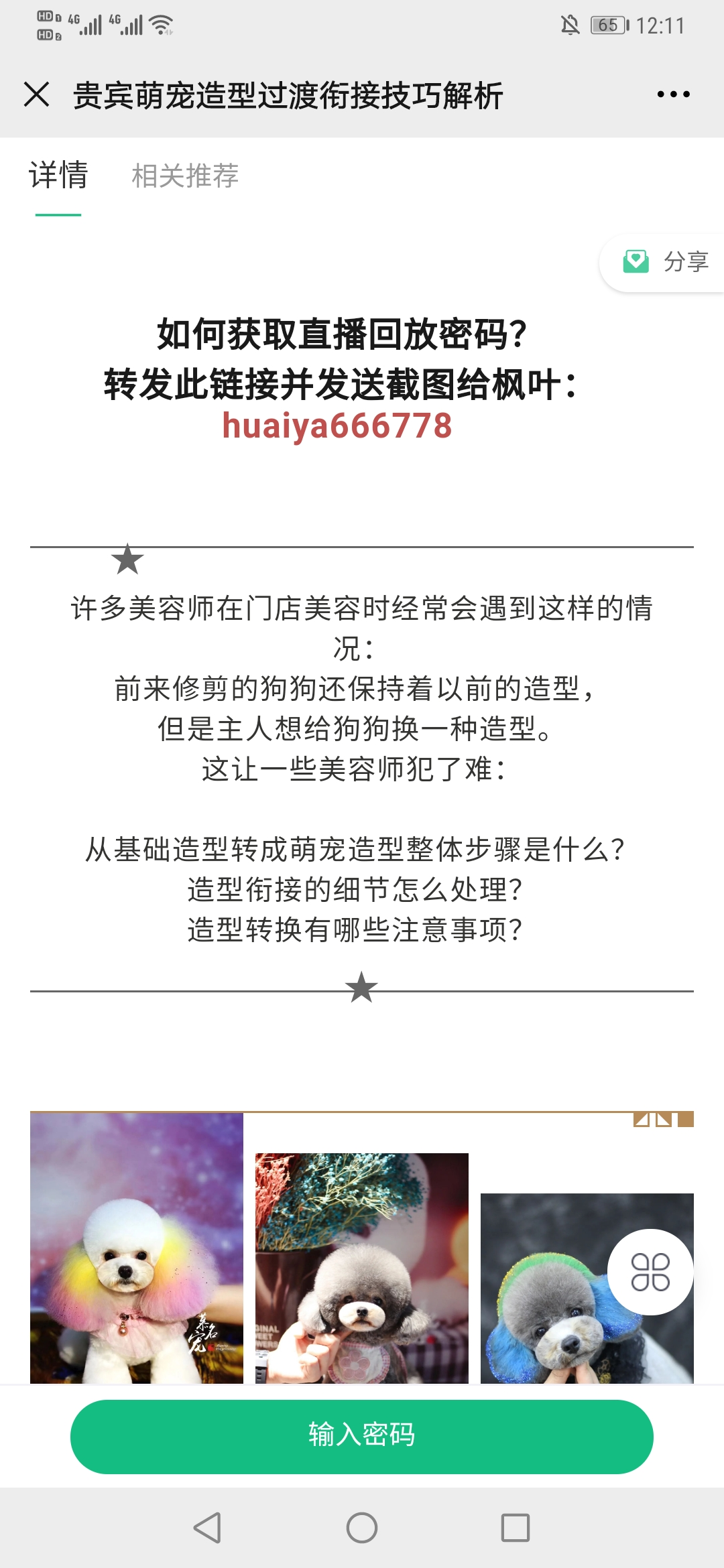学员想要看回放需要内添加助手微信,然后转发直播链接到朋友圈并截图才可以获取回放密码,实现内容撬动流量裂变。