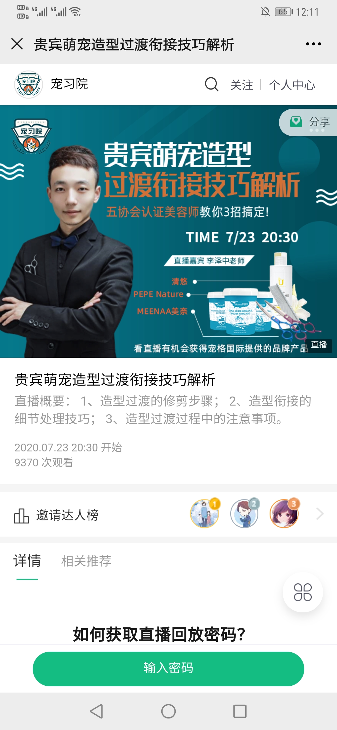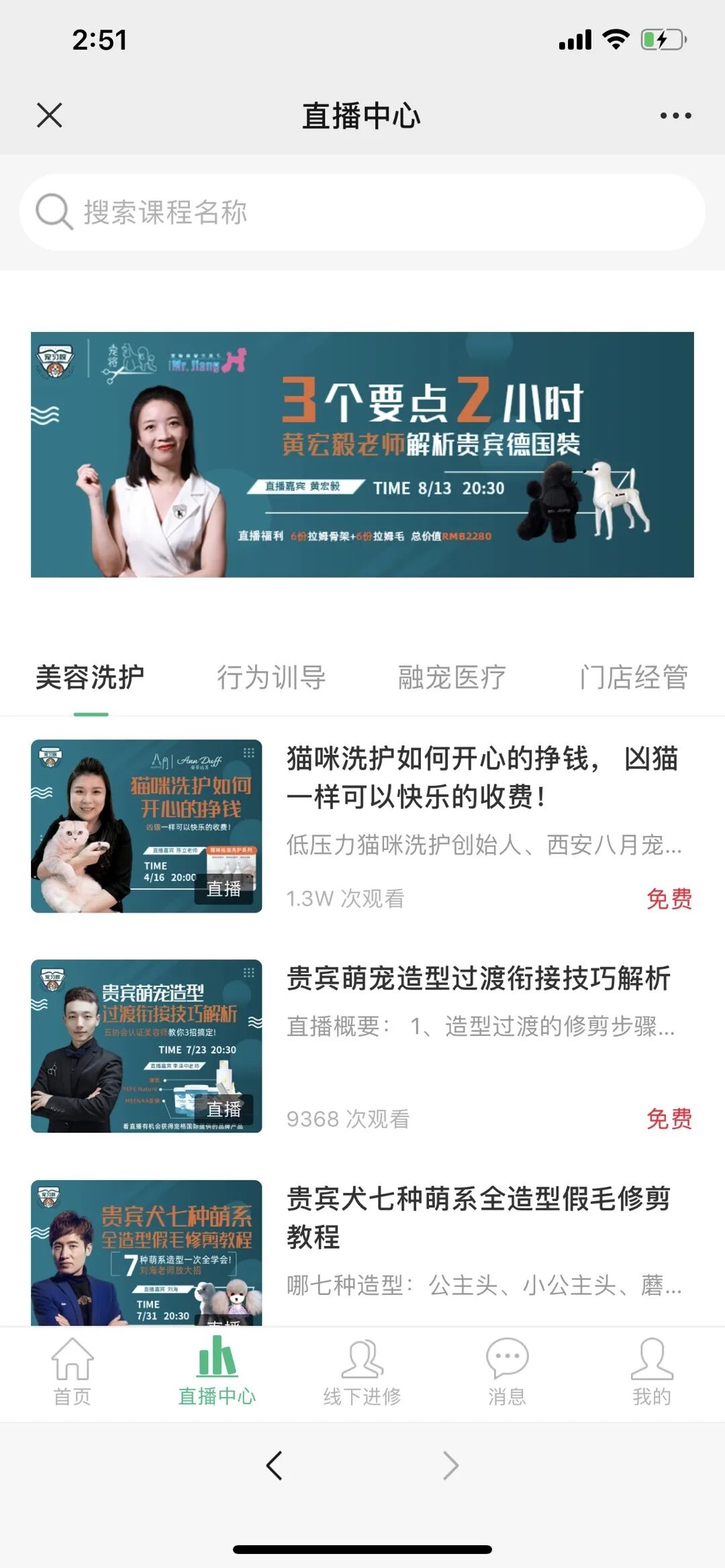 正如他们的爆款直播《猫咪洗护如何开心的挣钱,凶猫一样可以快乐的收费》就是“踩”中两个关键词:“猫咪洗护”、“挣钱”,让学员直观感受到学习目的和内容。