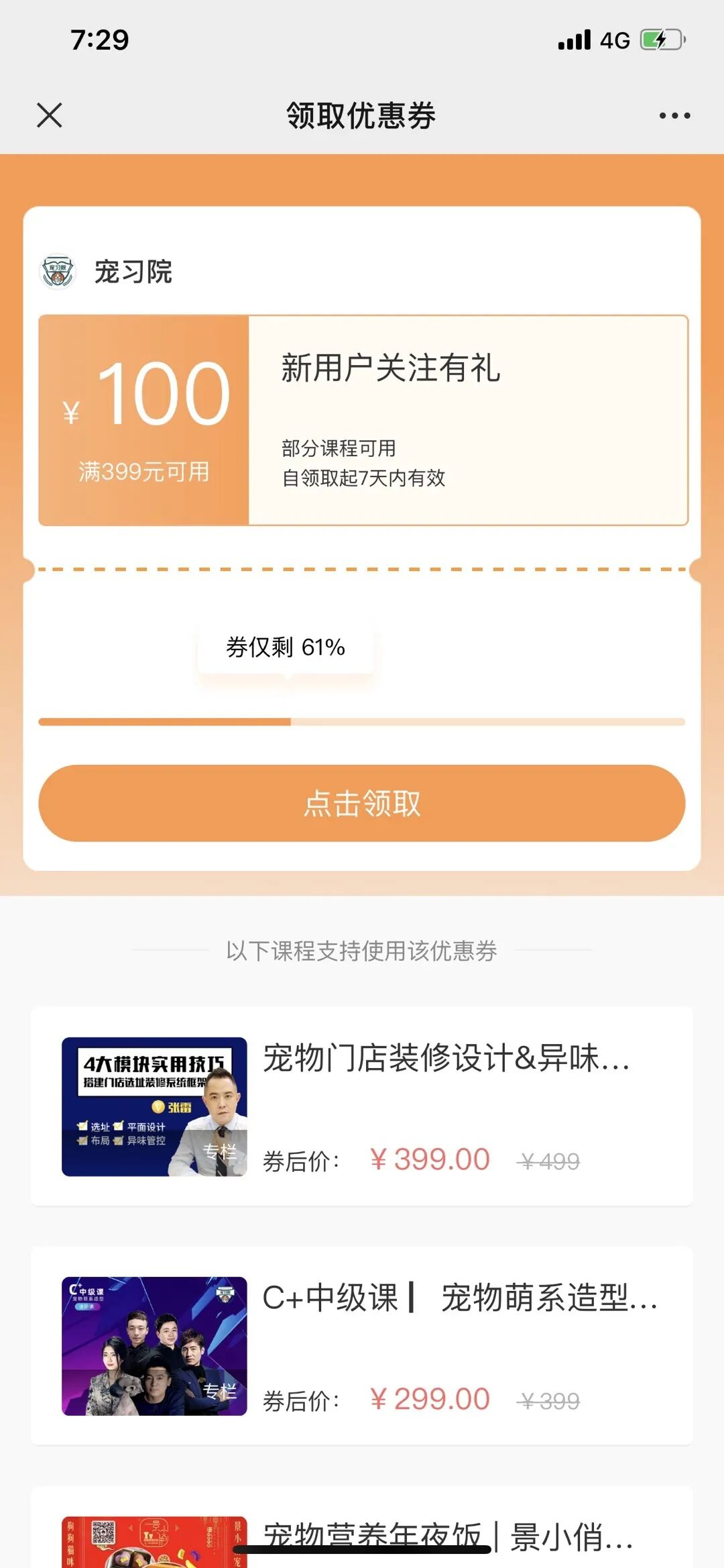 新学员还有专属的100元优惠券可以领取,据团队数据复盘,新人优惠券领取率40%,从领取到购买,转化率也能达到了5%。