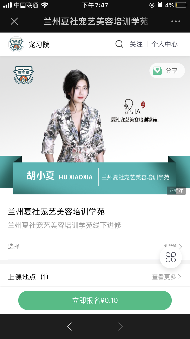 「宠习院」小鹅通店铺积累了来自全国各地的学员和店主后,他们也开始从线上为线下各个合作学院导流,如果学员想线下参加深度的学习,可以通过线上报名方式,然后由专人跟进对接。