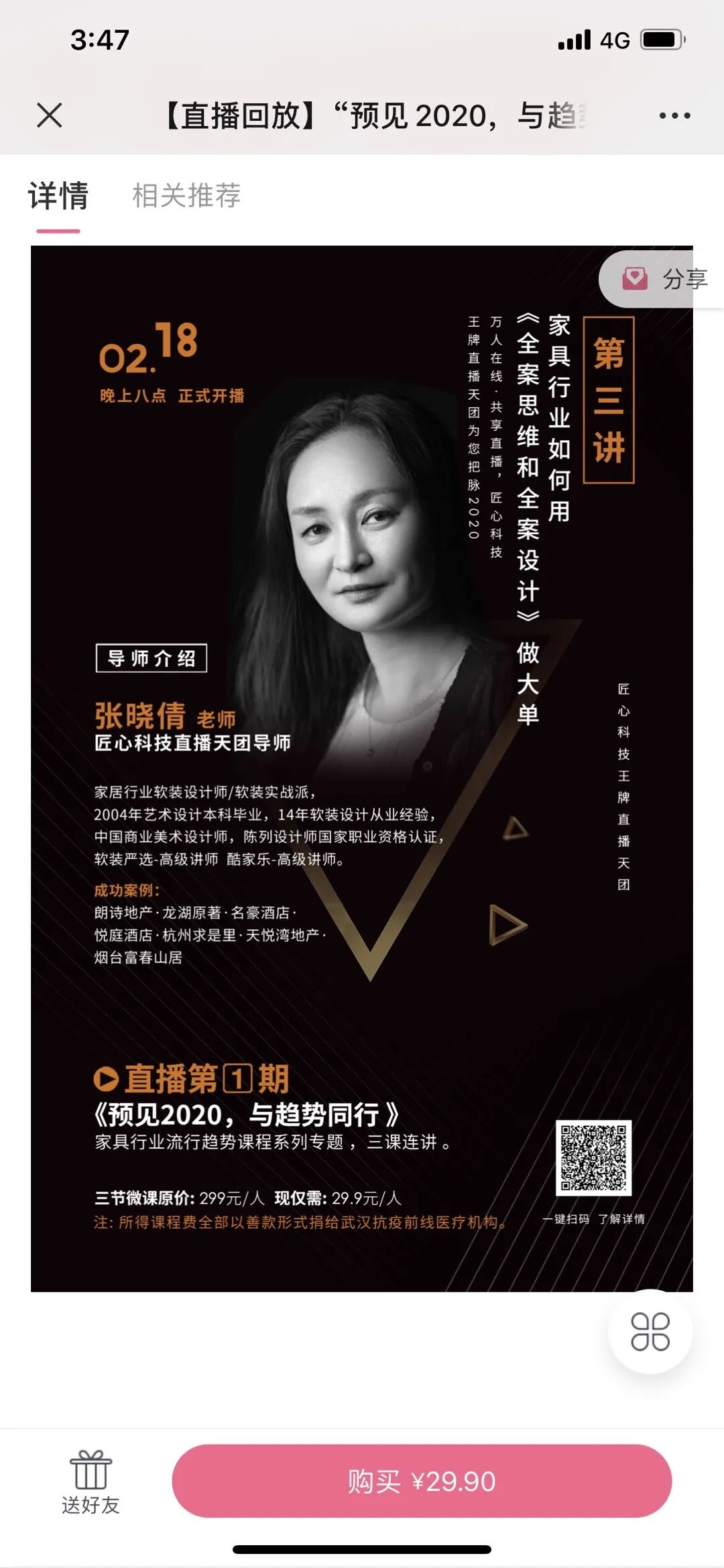 同时,「匠心软装商学院」还将直播课程筹集到的70,000元课程收入全部以善款的形式捐给湖北抗疫前线的医疗机构,与医护人员一起共进退。
