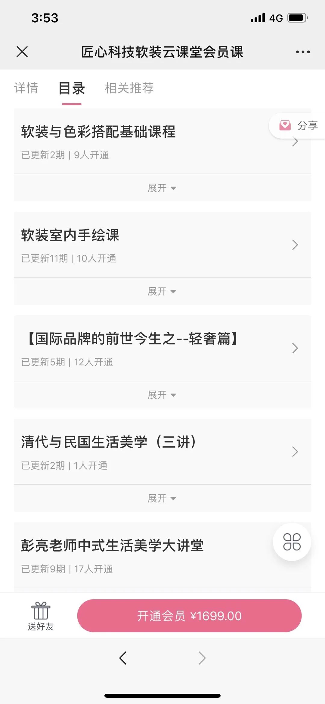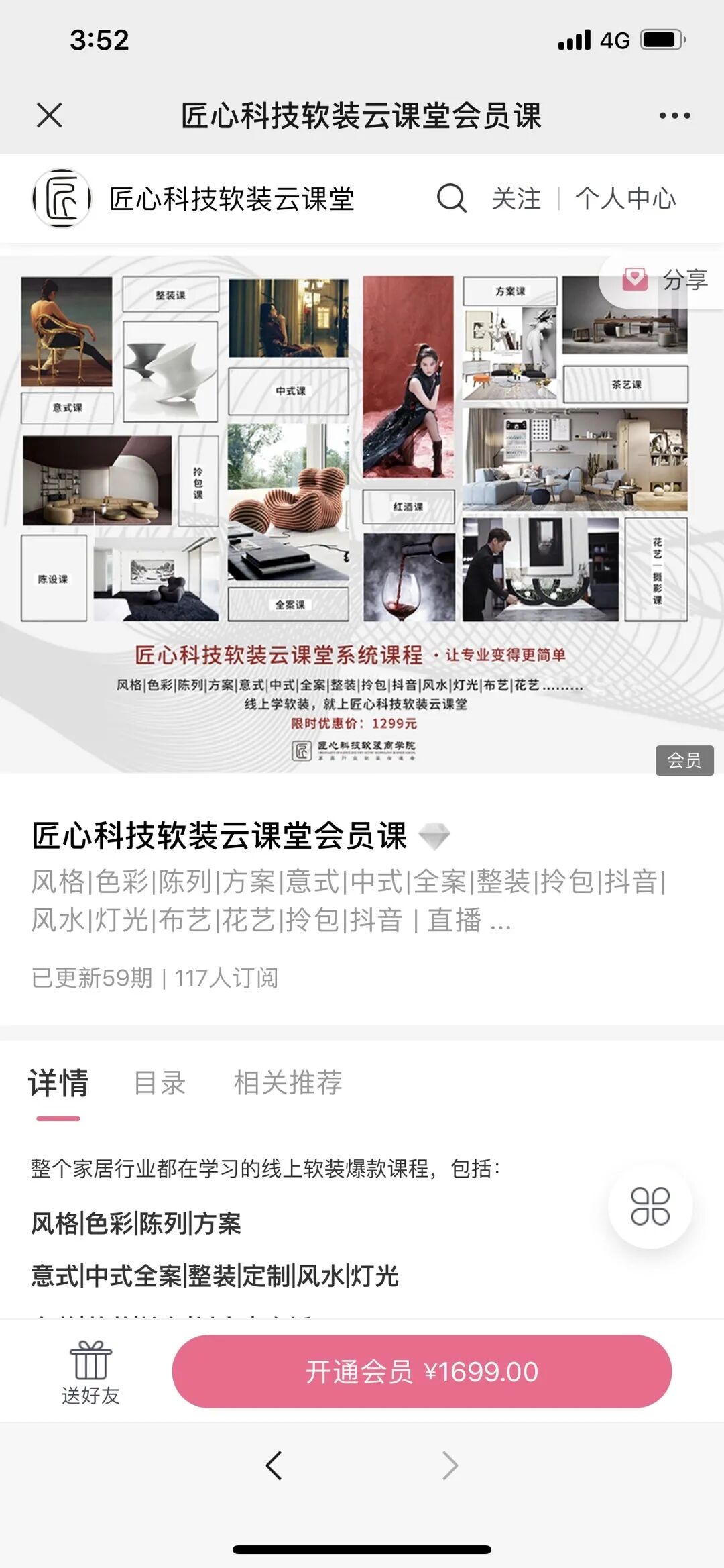 「匠心软装商学院」店铺里,会员商品几乎囊括了所有的课程内容,是店铺最完整最系统的课程产品。