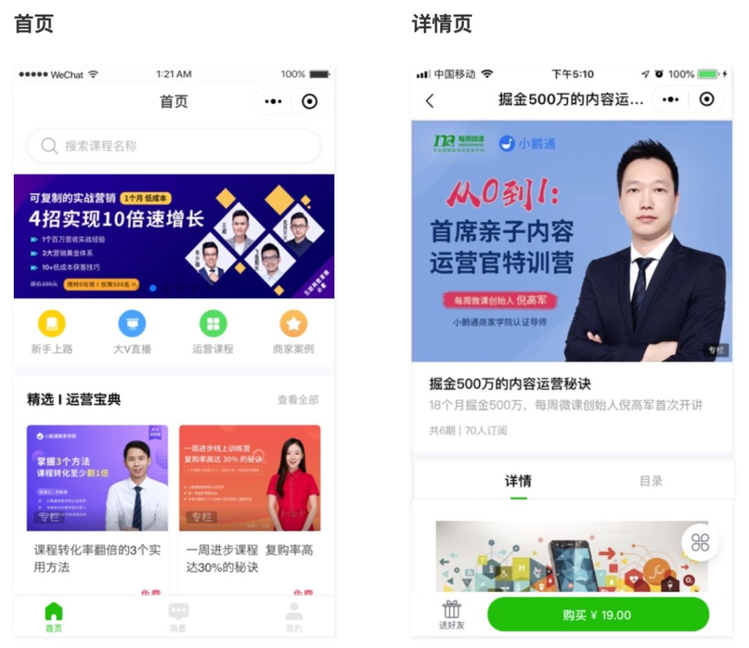 而且,小程序店铺的视觉体验,也是美出了一个新高度。店铺首页和课程详情页超强的视觉设计体验,全新布局展示课程信息,让内容更直观,视觉观感更强烈,让用户一目了然,不错过任何课程!赶快打开你的小程序店铺看看吧!