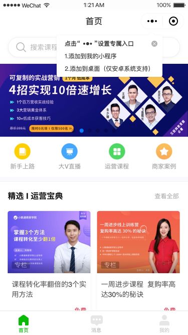 过去很多商家都在后台留言,学员们都习惯用小程序听课啦,希望我们也有一个非常轻量化且方便用户学习的微信小程序课堂!