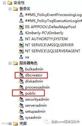 解决:为了安全性考虑,我们可以新建一个sql server账号,赋予dbcreator和public角色即可。如下图: