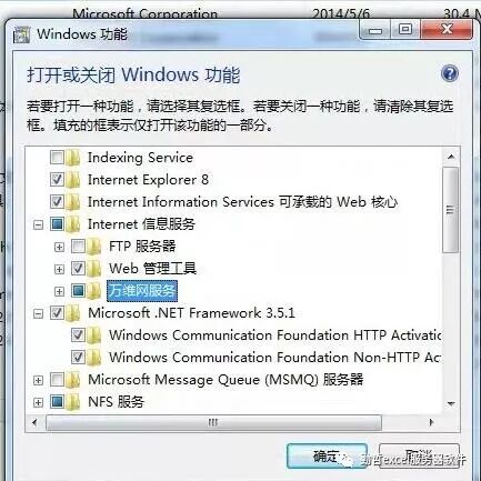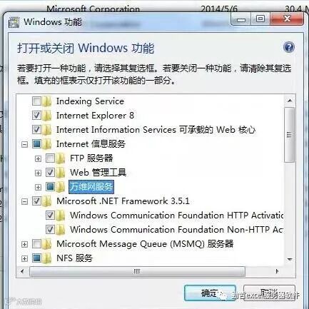 解决:打开控制面板---程序和功能-打开或关闭windows功能,全部勾选internet information services 可承载的web核心、internet信息服务、microsoft.net framework3.5.1三个选项的所有子项,点确定即可,如下图:
