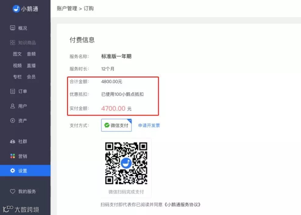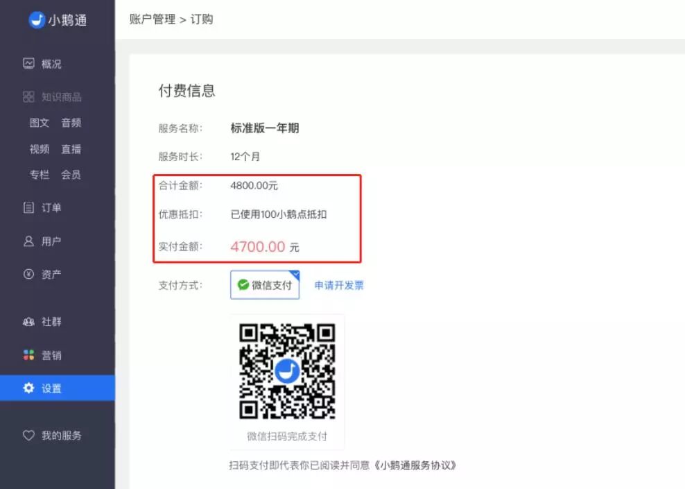 注*:小鹅点不可直接提现,仅可在购买小鹅通服务时抵现使用。