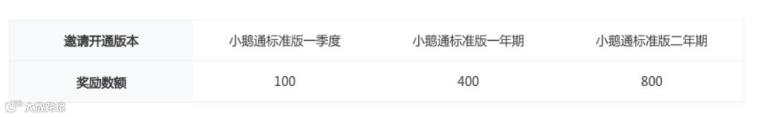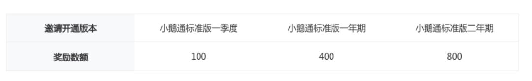 2.每成功邀请一位新客户,都可以获得小鹅点奖励。邀请开通不同时长标准版,所获得的小鹅点如下: