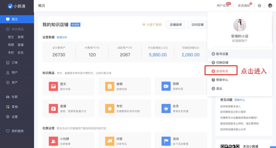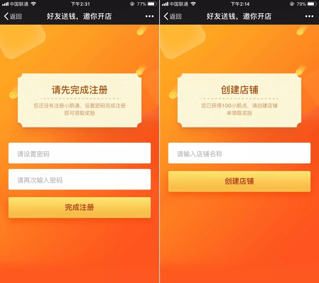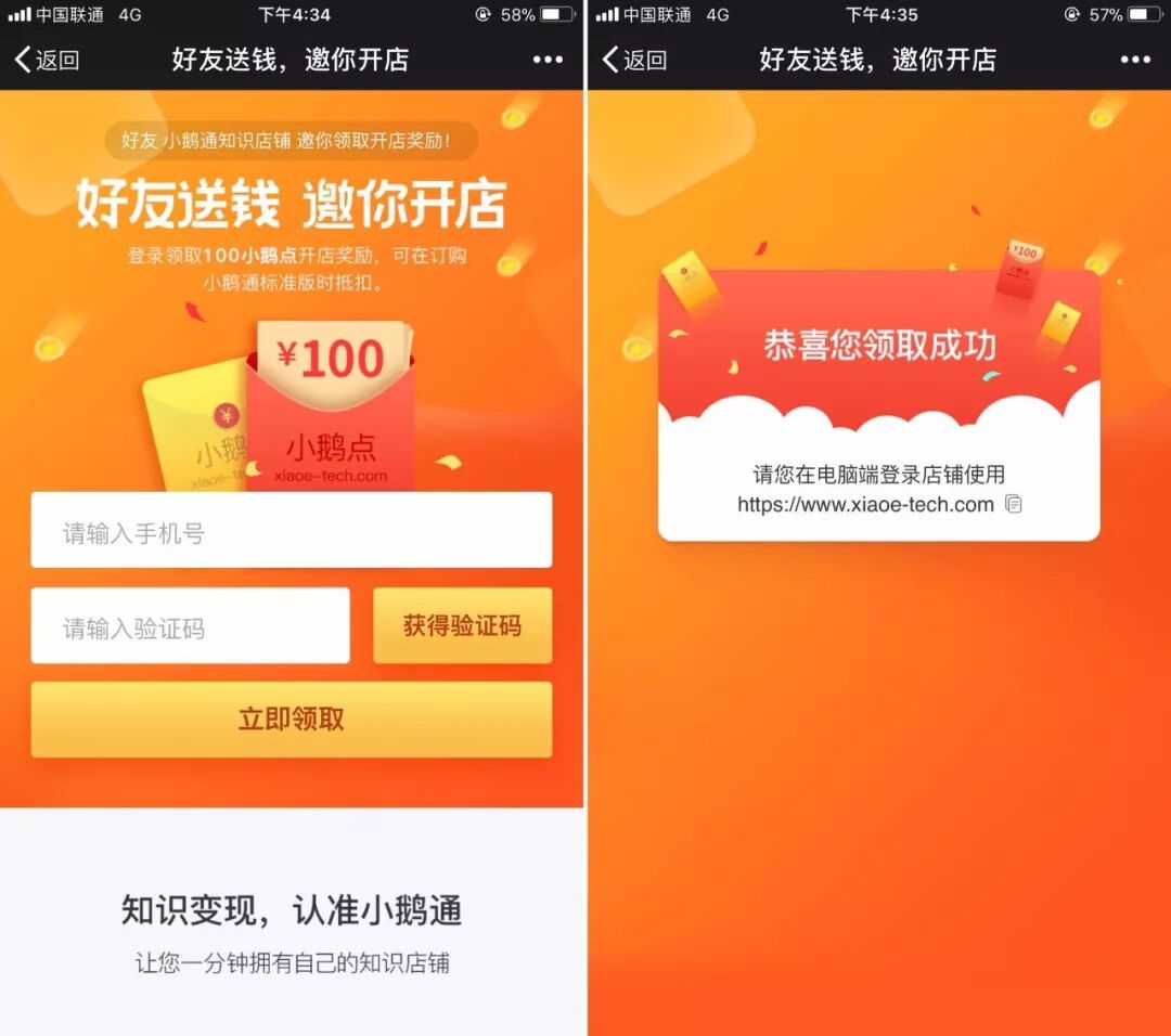 如果被邀请方还没有注册小鹅通知识店铺,简单注册之后就可以成功领取小鹅点。