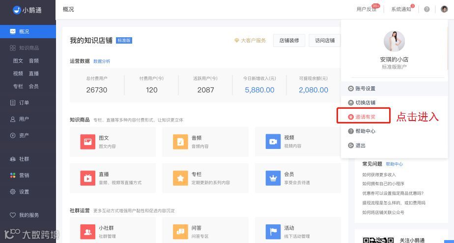 1.被邀请方成功开通小鹅通标准版,即为邀请成功,您可以获得相应的小鹅点奖励。
