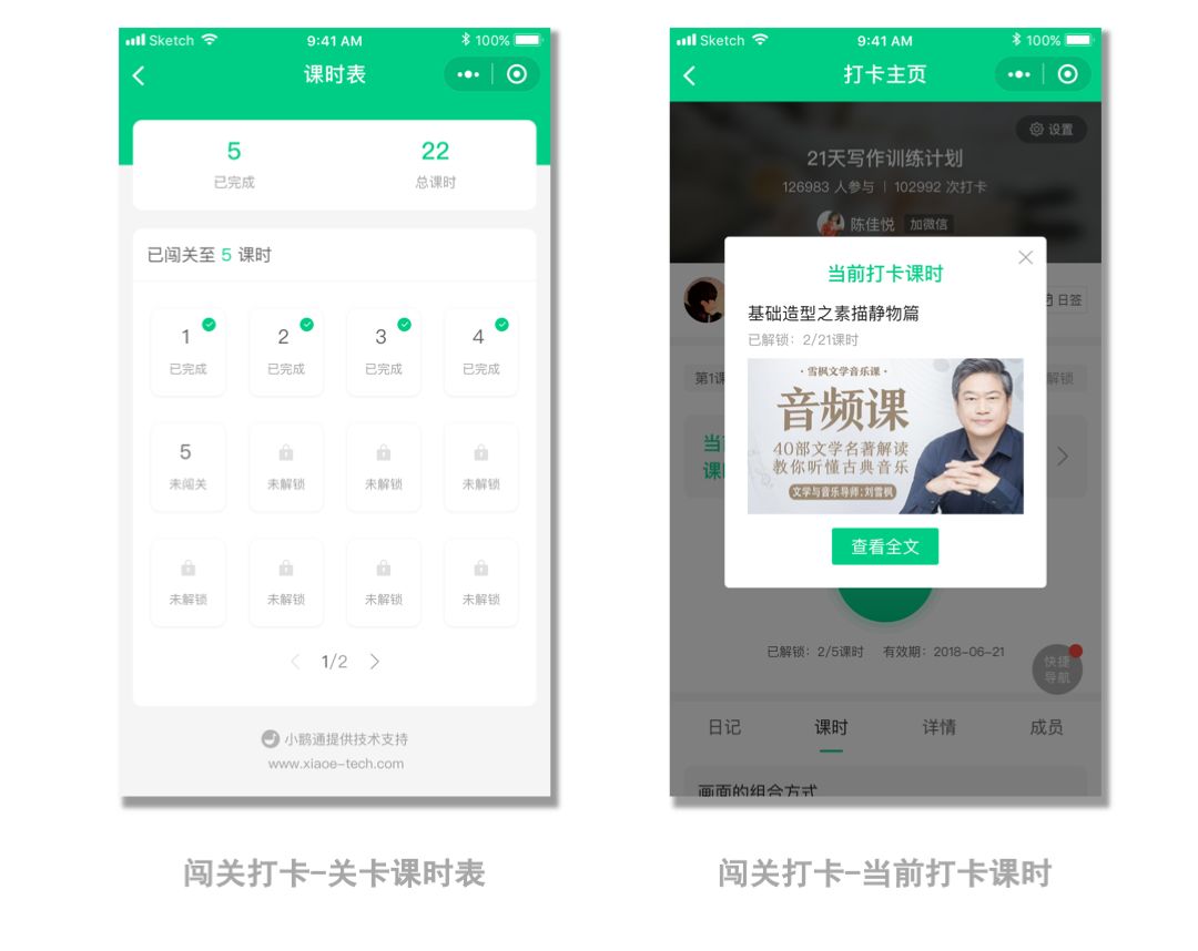 在闯关打卡活动,学员需要完成当前课时才能解锁后续课时