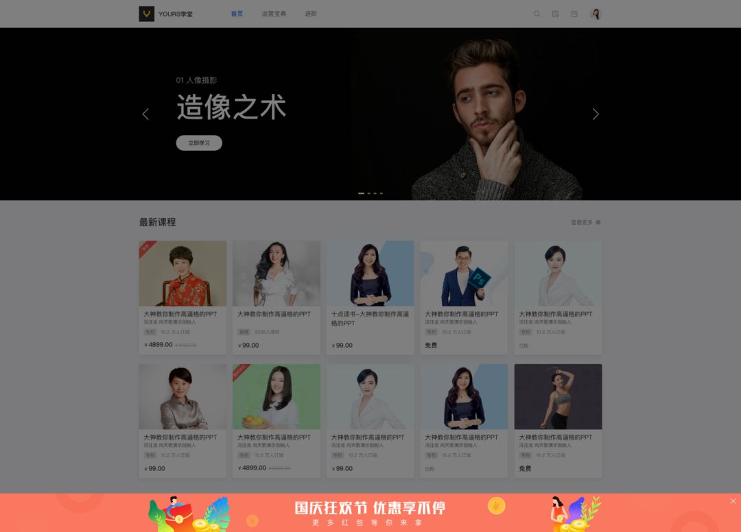 尽可能利用一切资源位,面向学员实现多维促销,是在竞争中脱颖而出的不二法门。小鹅通全新PC版网校,已经全面开放贴片广告位自主配置,让你的营销活动更上一层楼!
