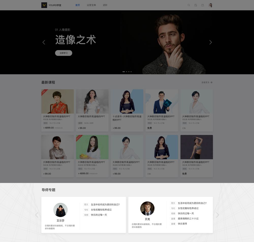 在这个全民IP化的年代,对老师本人的适度包装,也是会引发学员付费转化的一大教学亮点。就知道你有这样的需求,所以我们为你特意增加了一个更为吸睛的「导师专题」,并配备了两套相应的样式模板。