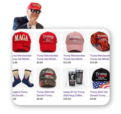 在这场全球化的商业角逐中,中国出海独立站商家用实力表明:只要产品质量上乘且价格实惠,产地根本不是消费者考虑的首要因素。即便漂亮国政府多次呼吁 “购买美国货”,但消费者还是会理性地选择性价比高的产品。更有意思的是,川普本人在这场商业狂欢中也玩得顺风顺水。他巧妙地将自己的政治影响力转化为商业价值,将竞选活动和商业营销完美融合。据统计,仅靠售卖 “MAGA” 帽子,川普团队每天就能有 8 万$的进账。