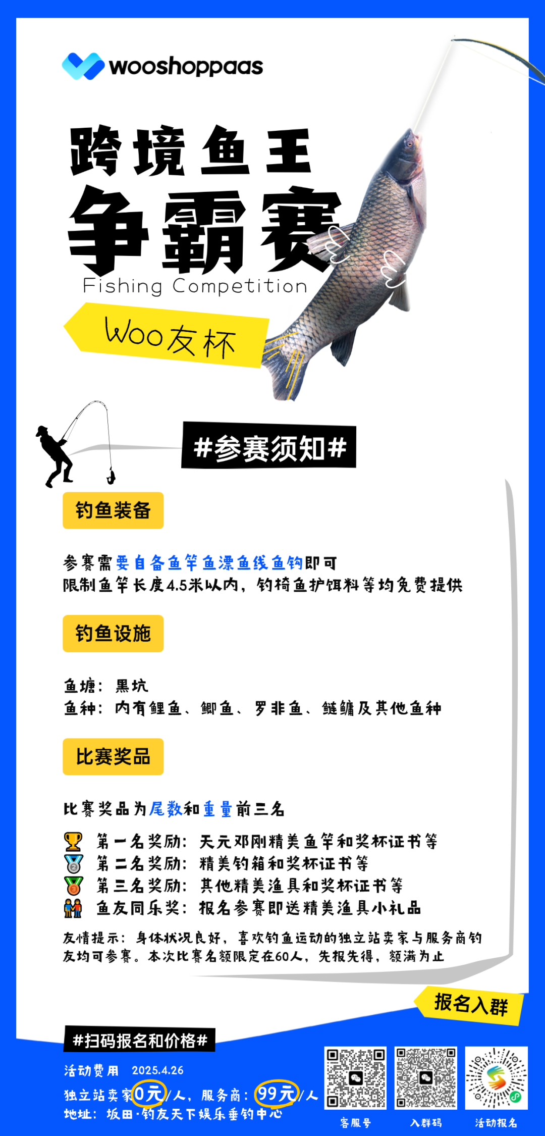 身体状况良好,喜欢钓鱼运动的独立站卖家与服务商钓友均可参赛