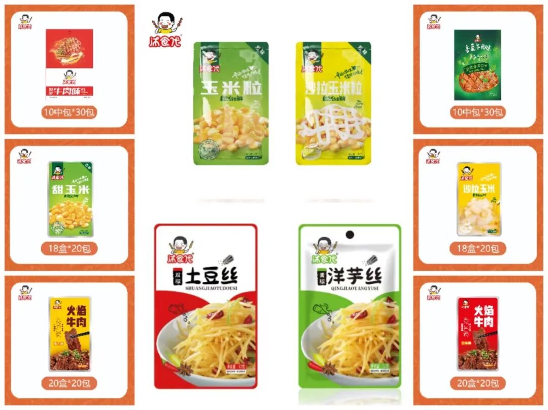 玉米糖果·果板·吸吸冻·薯片·虾条·三角脆·鲨奥利角·风干牛肉·蜜汁牛肉·香菜牛肉·烈火牛肉·甜玉米沙拉·纯天然玉米·火焰牛肉·去骨猪蹄·纯腿肉·双椒土豆丝·青椒洋芋丝·田园开心豆