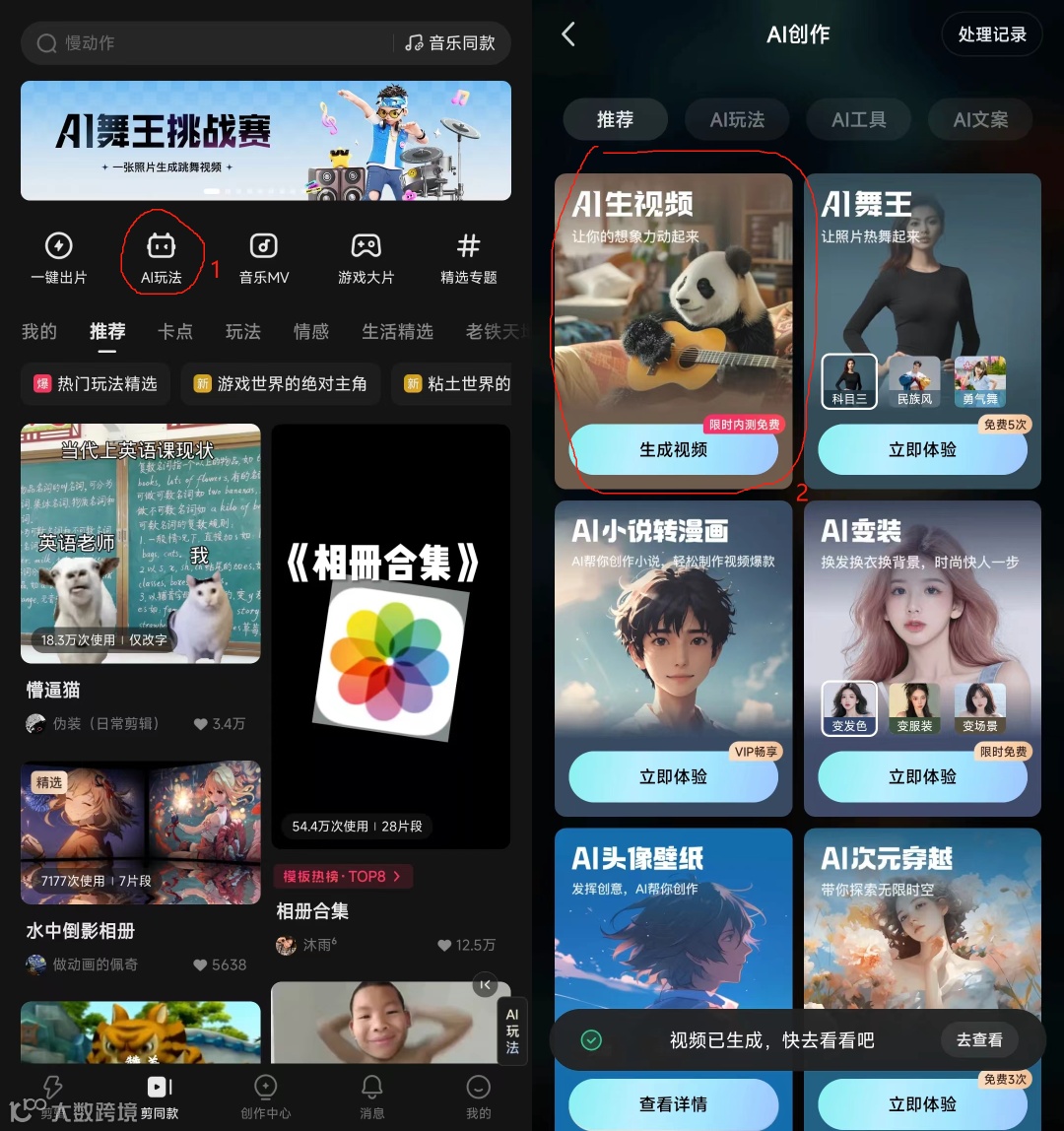 申请流程:下载快影APP - AI玩法 - AI生视频模块 - 填问卷申请。