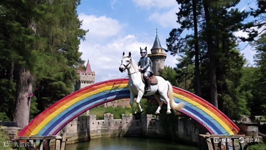 比如:“一只穿着盔甲的猫骑着独角兽在彩虹上奔驰,穿越魔法森林,背景是古老的城堡”,奔驰这个动作没了,直接不动了。