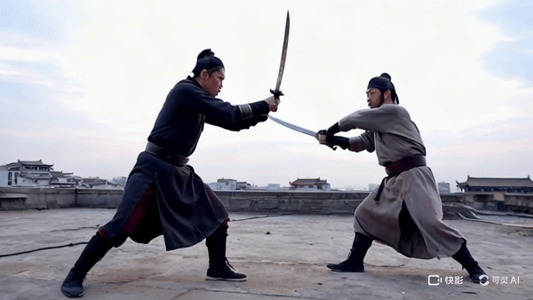 可灵自然也不例外,在复杂交互上,目前还有很大的进步空间。比如我跑的这个决斗场景。