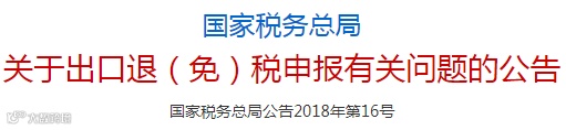官方公告:国家税务总局4月19日发布的《关于出口退(免)税申报有关问题的公告》(国家税务总局公告2018年第16号)
