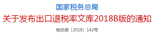 官方公告:国家税务总局4月11日发布的《关于发布出口退税率文库2018B版的通知》