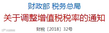 官方公告:财政部4月4日发布的《关于调整增值税税率的通知》(财税〔2018〕32号)