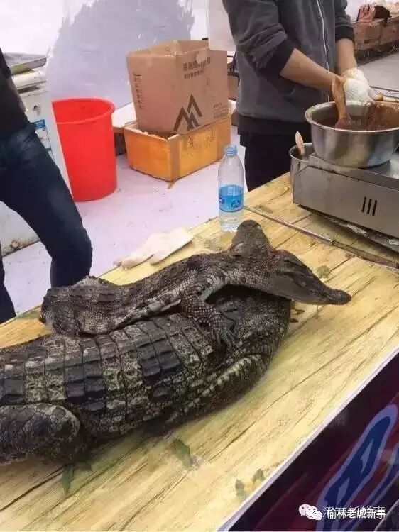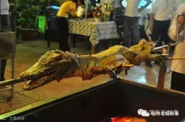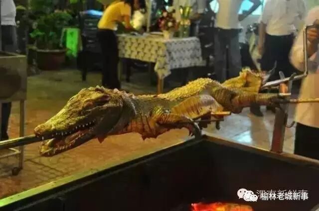 所谓的烤鳄鱼原来是摆了两只发臭的死鳄鱼在桌上做噱头。