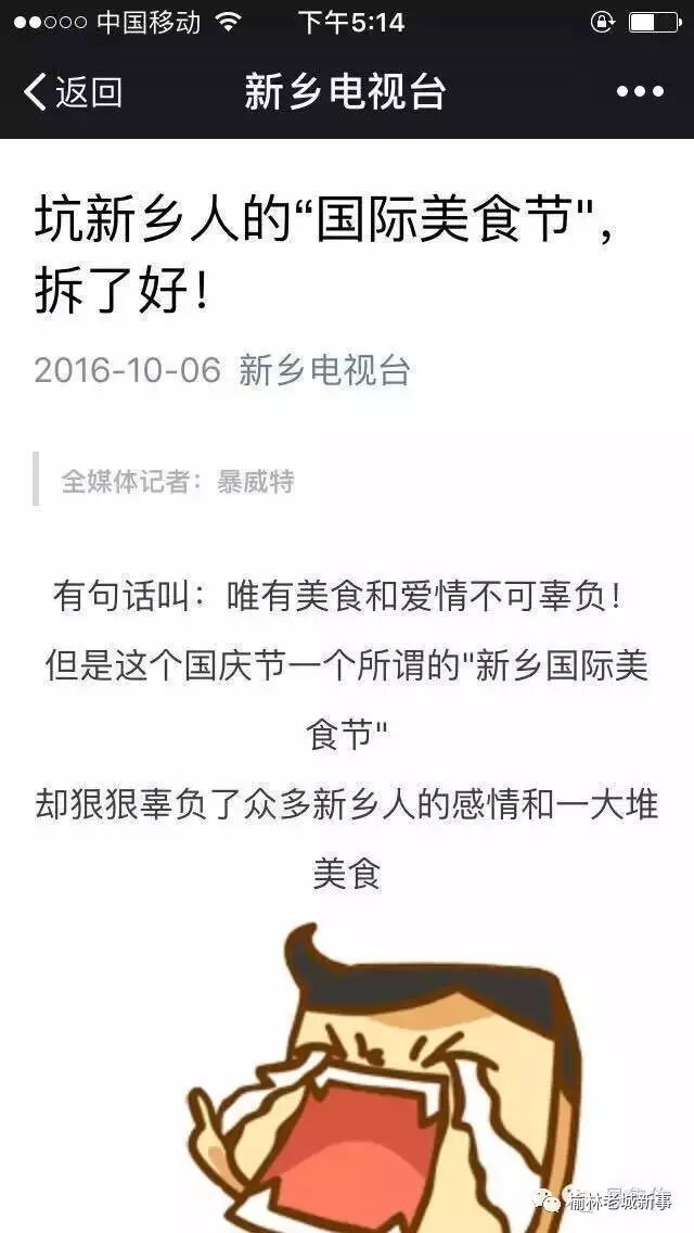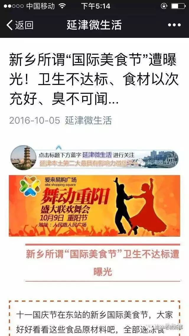 然而,活动还没开始,小编从网上看到这样一个消息:原来河南省新乡国庆期间也有一个类似的“新乡国际美食节”活动开展,但因其种种恶劣的经营行为被新乡人们轰出了新乡。