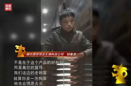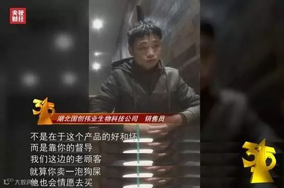 315晚会中曝光了武汉乐百龄生物科技公司、湖北国创伟业生物技术公司、安徽润九生物技术公司、威海艾维尔生物科技公司、江西南昌嘉仁生物科技公司黑手伸向老人。