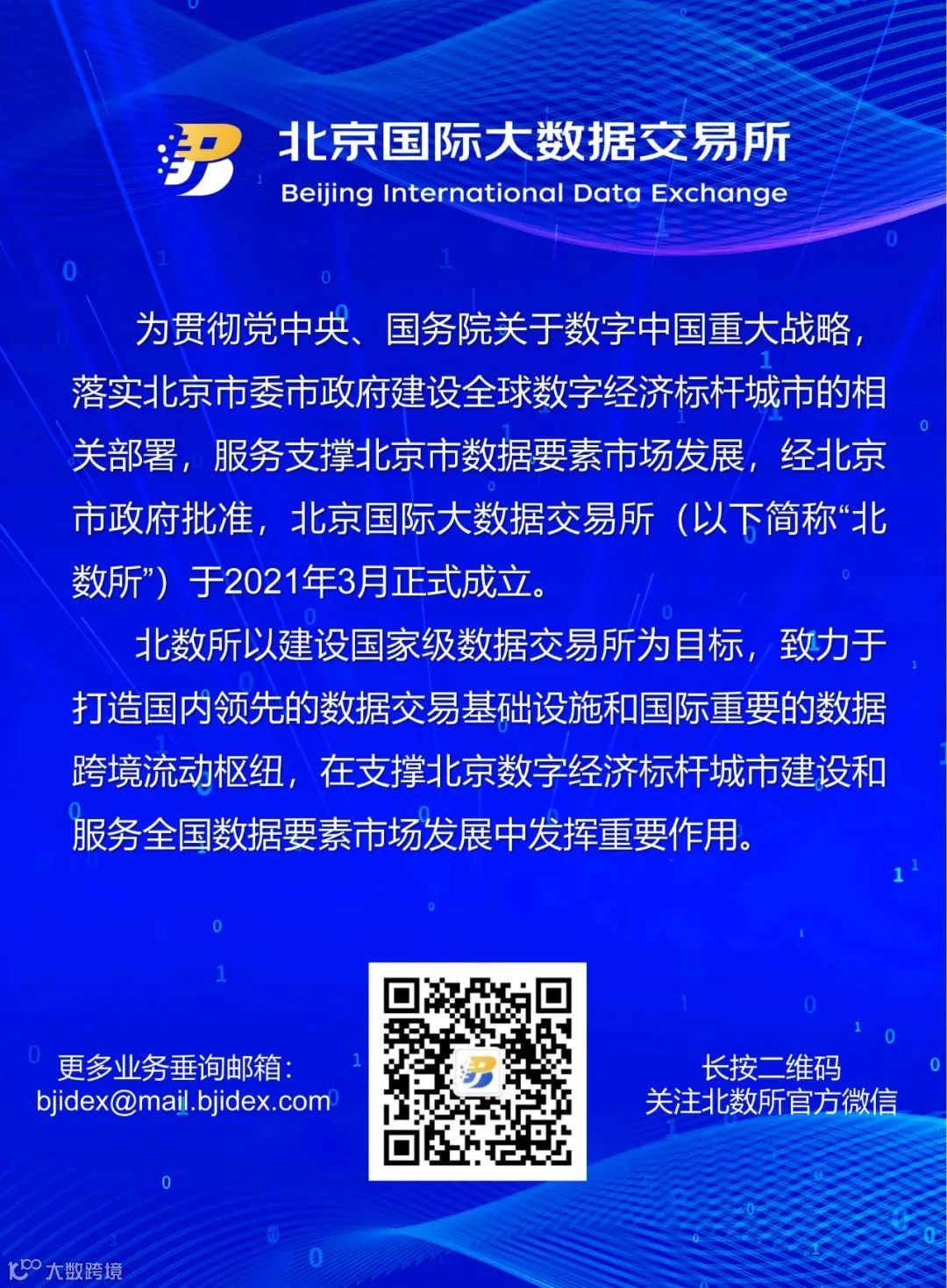 北京国际大数据交易所是贯彻北京市"国家服务业扩大开放综合示范区"和"中国(北京)自由贸易试验区"建设的标杆性重点项目。