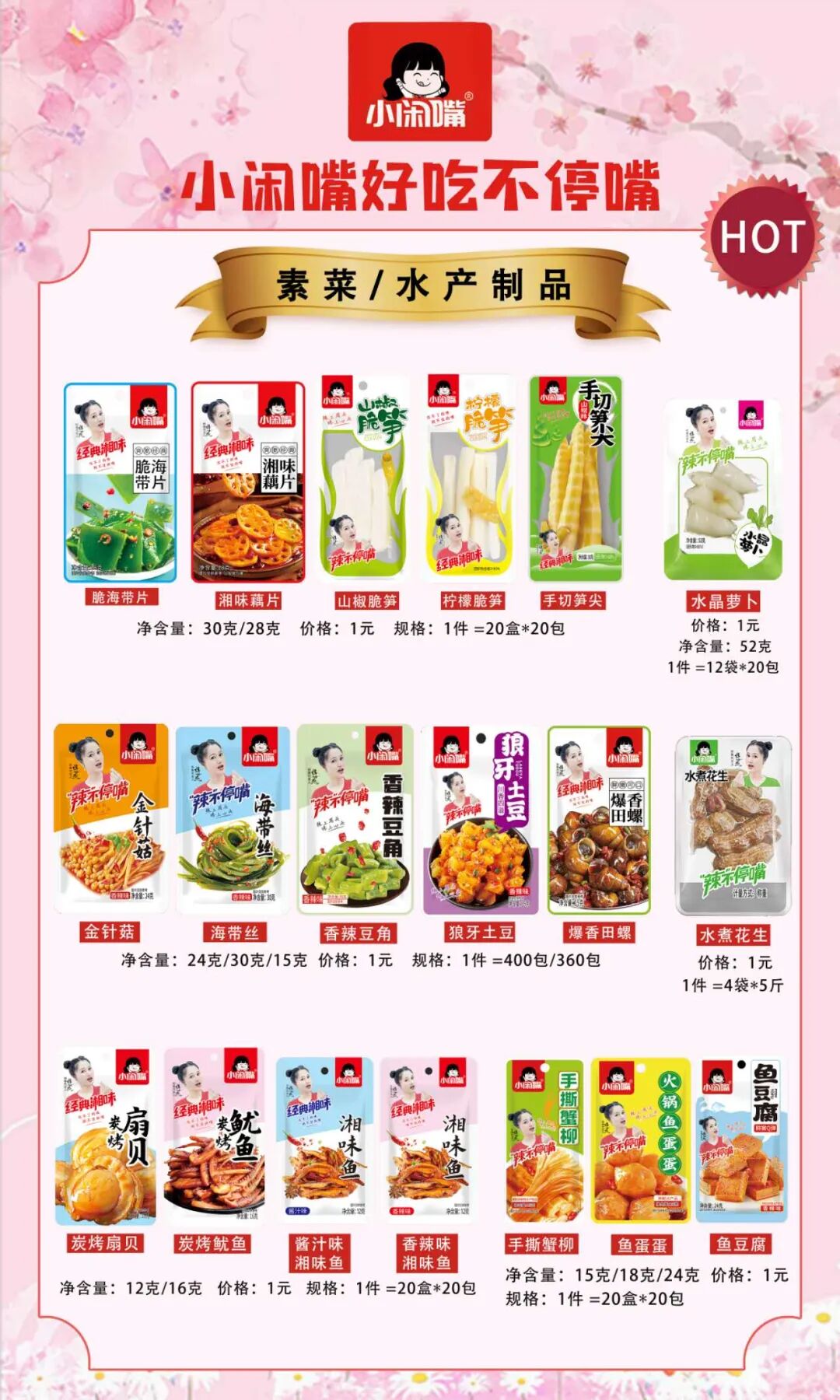 麻辣系列·豆卷豆皮·笋条笋尖·脆皮肠·巧克力三角脆·鹌鹑蛋等