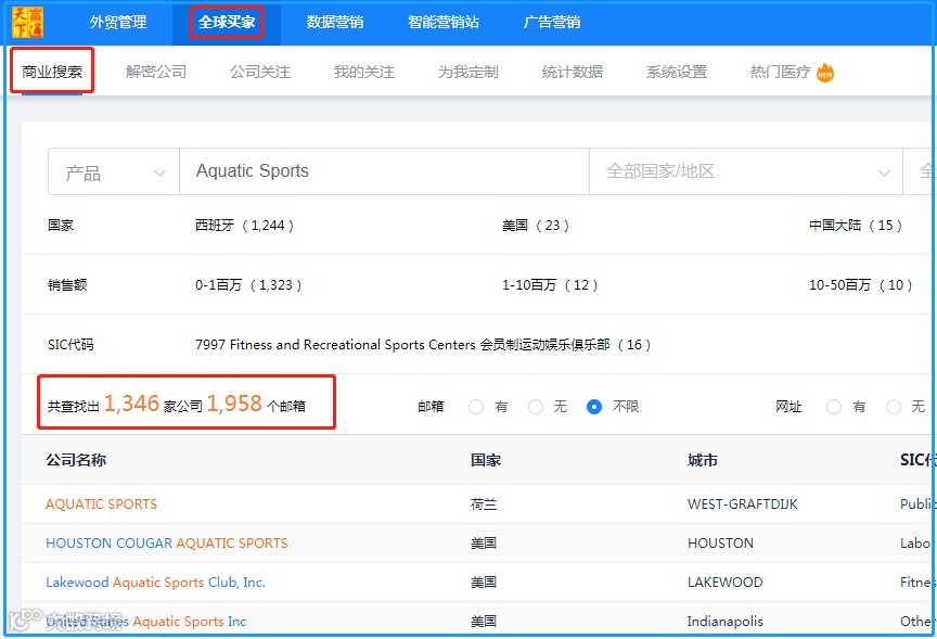 操作步骤:【富通天下云平台】-【全球买家】-【商业数据】输入关键词-采集并分类客户邮箱信息。