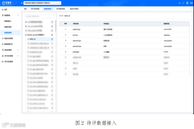 依据天津滨海高速公司数据安全管理规定和评估需求,进行了数据资产质量评估工具“好数评”的部署,并对项目的基本信息、数据信息进行了配置,与滨海高速待评数据成功进行了对接,运用工具构建了包含命名规范性、数据精度规范性、数据元素完整性等多个二级指标在内的评估指标体系,并对各指标的计算规则和权重进行了合理设置。