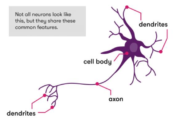 我们的大脑可以看做一个巨大无比的网络,它由约860亿个神经元构成。正如下图,每个神经元又会生出数个树突(dendrites),神经元之间通过树突联系在一起,就像我们搭建的电路一样。