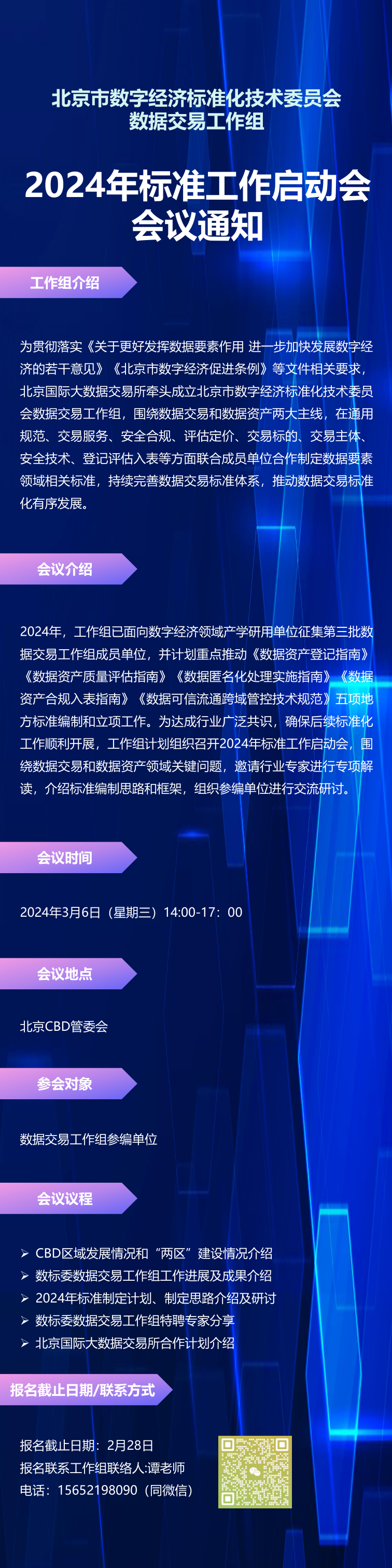 关于召开北京数标委数据交易工作组2024年标准工作启动会的会议通知