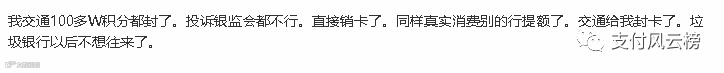 于是信用卡界一片哀嚎,这次大面积降额或封卡的数量和严重程度是以前所没有过的,涉及到多家银行,甚至连过去一向被认为没有什么风控的银行,现在也降额了,而且还是悄无声息的直接降额,连个短信或其他提示都没有。这种调整让很多持卡人措手不及。