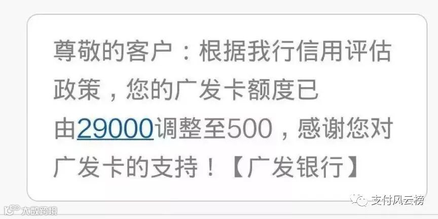 有人额度再没有任何提醒情况下被砍半,甚至有人直接几十万的卡被降到几千!如上图就有卡友29000的额度降到500。