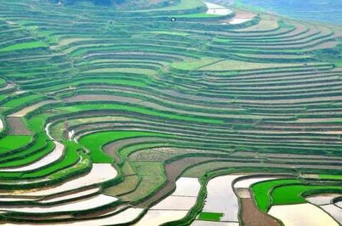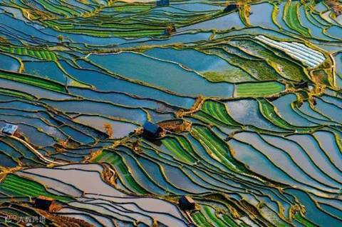 在耕作期里泉水自山顶向山下逐层灌溉气象万千,收获期里五颜六色的农作物又给梯田增添了无限生机。