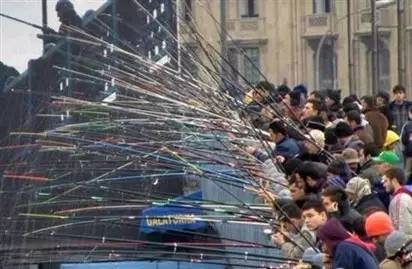 派了他儿子潜在水下一条一条的挂在他们的鱼钩上!
