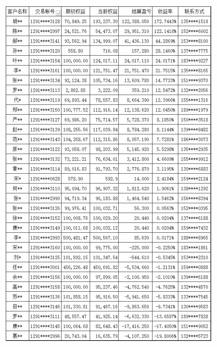 月度总冠军:可获得由我公司提供的3万元实盘交易资金,盈利部分可以提取现金;