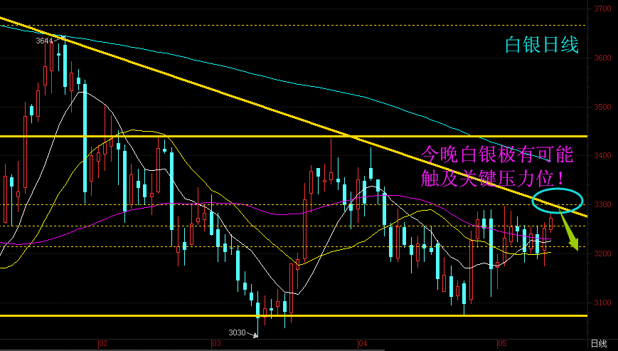 今日午后,白银延续昨日涨势继续上行,按此趋势晚间即将触及上方关键压力位3300,是受阻回落?还是冲破强压继续上行?我们需重点关注晚间20:30公布的美国零售销售数据寻找答案。上月公布的零售销售大幅不及预期助白银大涨(详情可回看4月14日白银行情),对于本次零售数据,教头认为美国佬晚间的数据将会高于预期令市场大吃一惊,利空白银,是非对错我们今晚20:30见分晓。