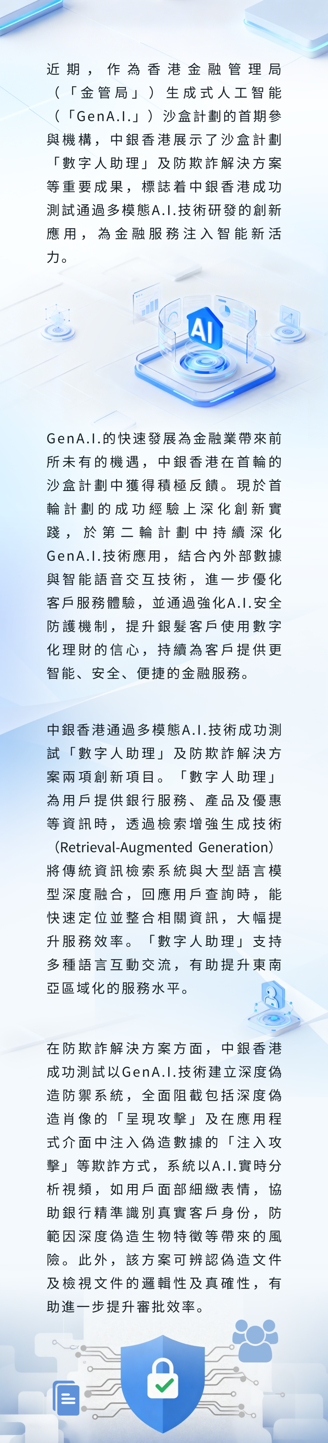 中銀香港展示金管局生成式人工智能首輪沙盒成果|引領普惠金融科技新浪潮