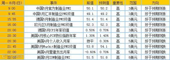 周一市场将惯例迎来每月初的全球制造业PMI发布日。在亚太时段中,中国官方和汇丰制造业PMI将先后出炉。而在欧美时段中,除了PMI数据将继续牵动人心外,德国CPI和美国核心PCE物价指数也有望成为市场焦点。若美国数据向好,料将打压金价走低。