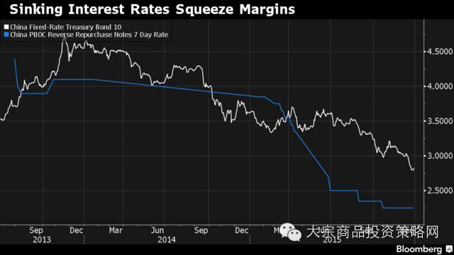 由于央行降低利率,银行业的存贷息差正在放缓。此外,来自互联网金融的竞争也将拉低银行业的利润空间。