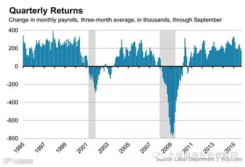 《华尔街日报》报道提到,美国新增非农就业人数已经连续三个月令人失望,要让加息成为今年12月美联储会议的议题,今晚公布的10月数据必须带来一些相对正面的消息。到9月非农就业报告公布为止,美国月均新增就业者仅16.7万人。Stifel Economics的首席经济学家Lindsey Piegza认为:“就业没有强劲增长,美联储会越来越难以证明今年年底以前加息合理。”