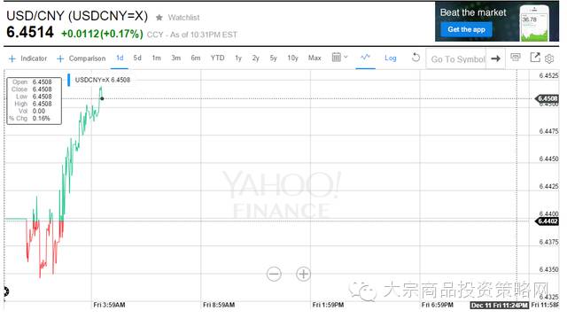 在岸方面,早盘最低跌至6.4522,较昨日收盘价下跌约140点。
