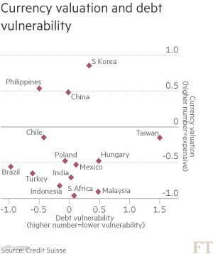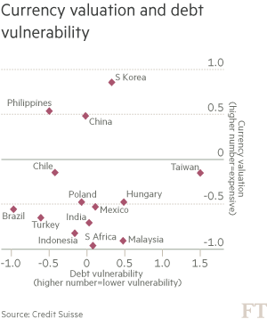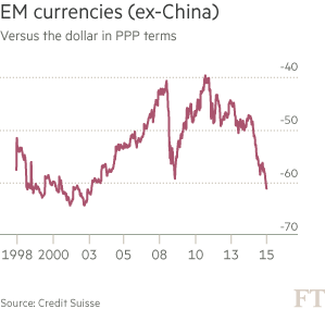 瑞信(Credit Suisse)的数据表明,按购买力平价计算,总体上新兴市场货币对美元的折价已经从2011年的40%大幅回升至逾60%。