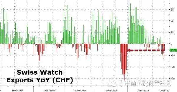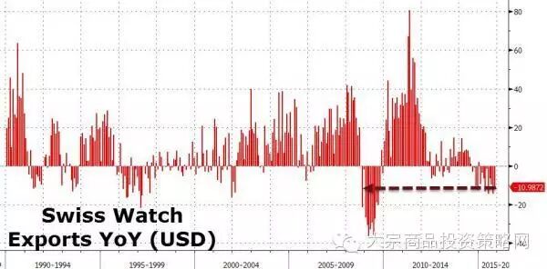 而来自瑞士钟表业联合会(Federation of the Swiss Watch Industry)周二公布的统计数据显示,以本币计价,瑞士手表出货量同比下滑5.6%,至19.5亿瑞郎(约合19.6亿美元)。这是四年来以瑞郎计价的出货量首次跌破20亿瑞郎。出货增速已经连续5个月为负值。不过,11月的跌幅比去年同期14%的跌幅好很多。