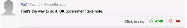 不过这次反应更强烈的竟然是外国的朋友。国外多家媒体对此事进行了报道,英国《每日邮报》篇报道虽然带有明显的有色眼镜,但没想到事情传开了以后,英国网民的反映是这样的:“点赞中国!中国太牛了!”这是评论里最热的一条:
