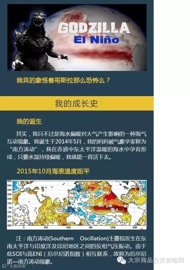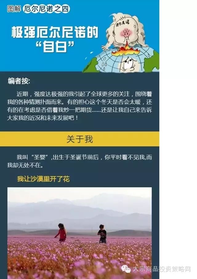 近期,强度达到极强的厄尔尼诺引发全球关注,有人担心这个冬天是否会太暖,有人则考虑是否借此机会炒一把期货。